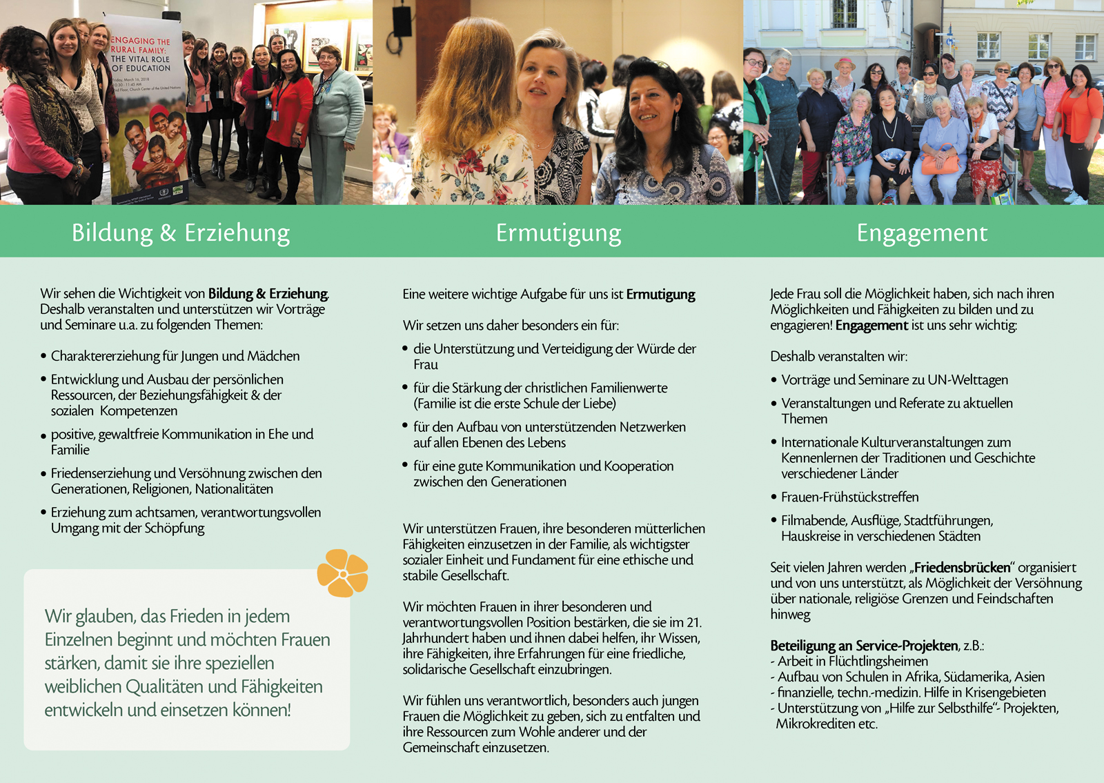 Nachdem beim Vorstandstreffen im März 2014 beschlossen wurde, Broschüren mit verschiedenen Themen der Frauenföderation herzustellen, ist es jetzt so weit.